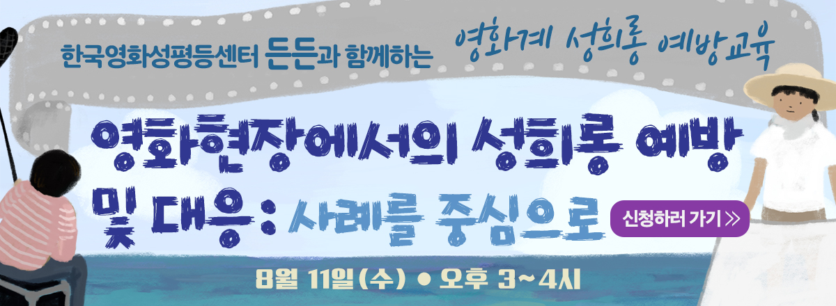 한국영화성평등센터 든든은 영화계 성평등과 성희롱 예방을 위해 매달 ‘영화계 성희롱 예방교육’ 공개강좌를 진행하고 있습니다.