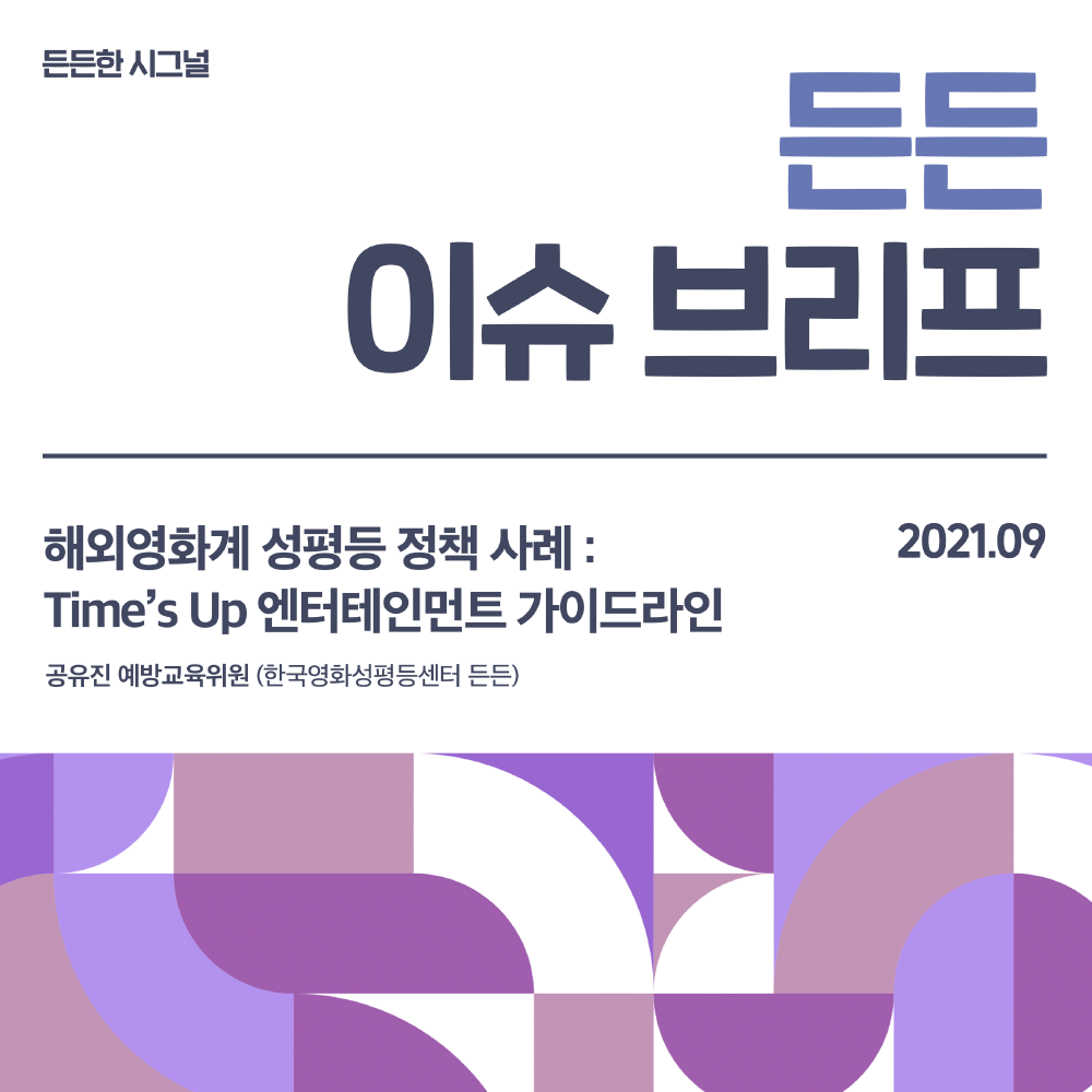 한국영화성평등센터 든든은 영화계 성평등과 성희롱 예방을 위해